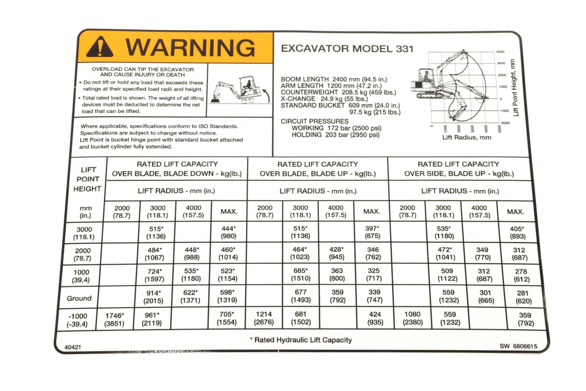 Decal for Excavators, 6806615 is designed and approved by Bobcat engineering to be tough and reliable.