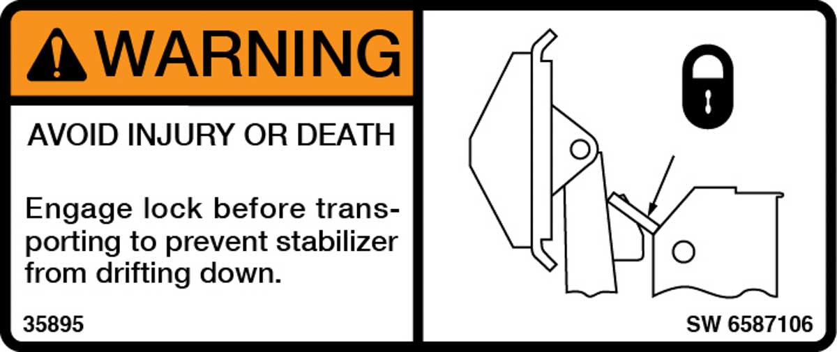 Warning Decal, 6587106 keeps your equipment looking well-maintained. An aggressive, pressure sensitive adhesive designed for Bobcat equipment. The long term permanent film withstands severe weather and handling conditions.