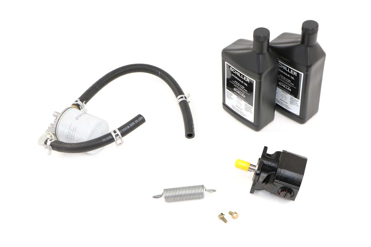 Hydraulic Upgrade Kit For Stand On Aerators, 970562 designed to add an inlet filter to the hydraulic lift system, replace the lift/lower pump with an upgraded pump and replace the pump drive belt tensioning spring on the Stand-on Aerators.
