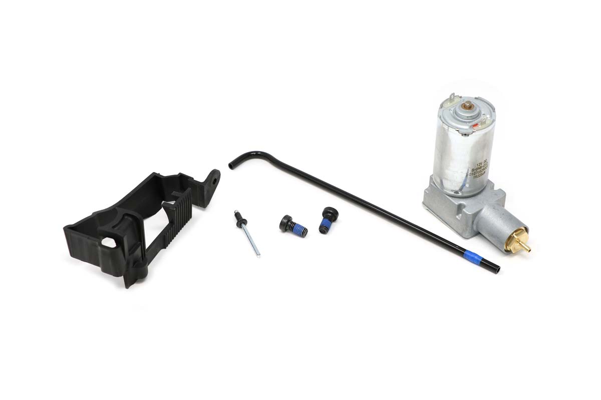 Air compressor for the loader air suspension seat. Replaces worn out 12 volt compressor to adjust seat height. Includes air compressor, black wire sleeve, and mounting hardware.